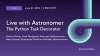In this session Live with Astronomer will dive into the Python task decorator. We’ll show how to easily turn your Python functions into tasks in your DAG using functional programming, and how using the Python task decorator can limit the boilerplate code needed in your DAGs.
